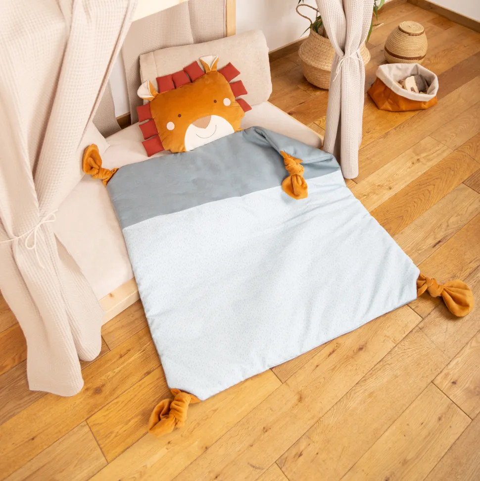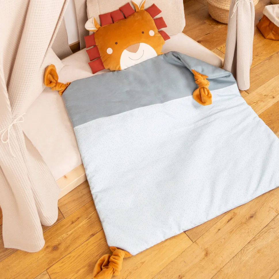 Het mooiste alternatief is de dik gevoerde speelmat in de vorm van een leeuw met een aangenaaid kussen. De speelmat is 90x13x116 cm groot.