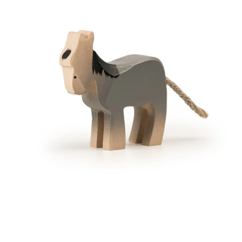 Deze ezel van Trauffer staat rechtop en is met de hand gemaakt van lindehout in Zwitserland, de gebruikte verf is vrij van chemicaliën. De ezel is robuust genoeg om mee te spelen. Hoogte: 7 cm.