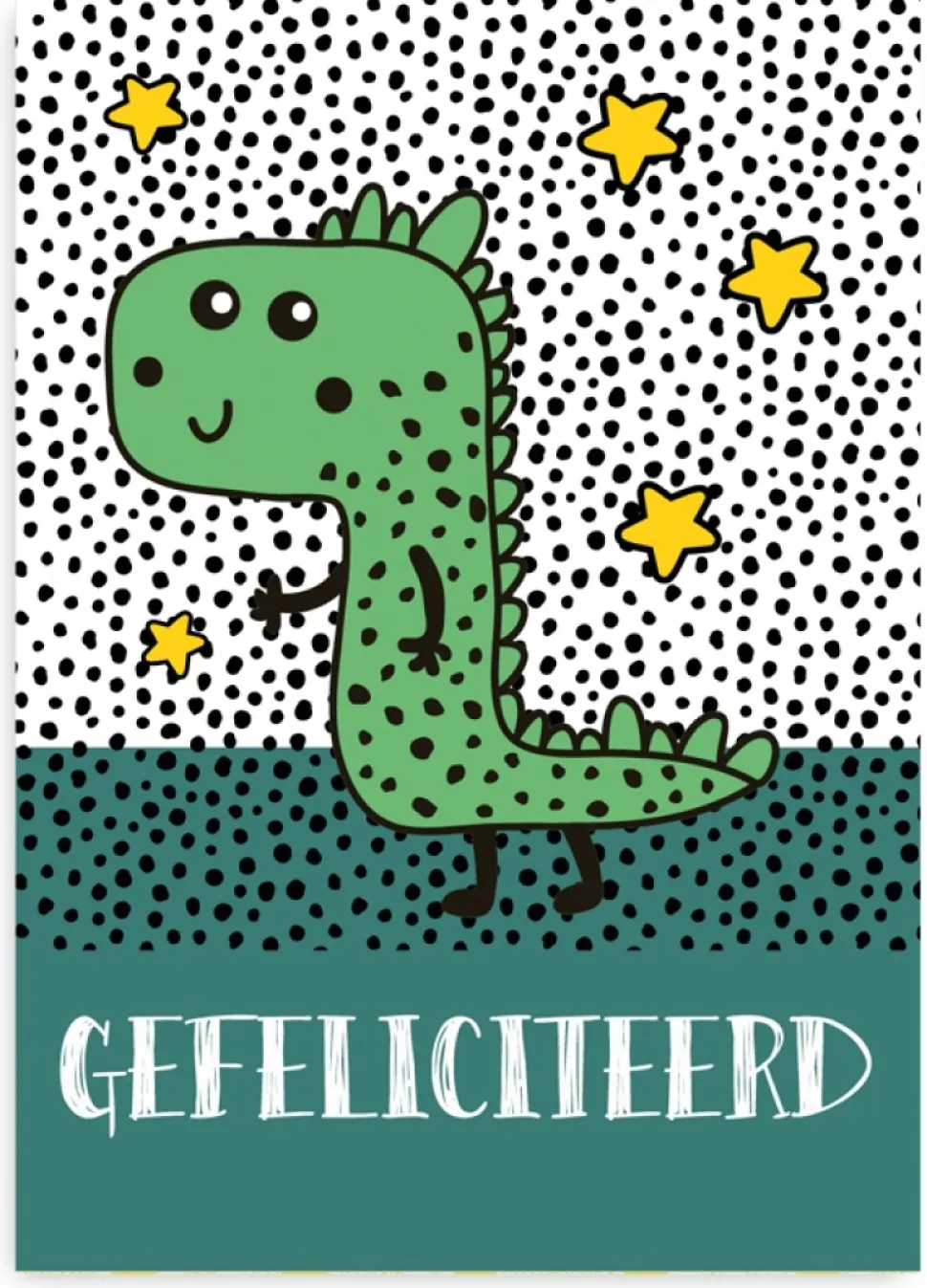 Specificaties voor: Wenskaart Gefeliciteerd (Dino)