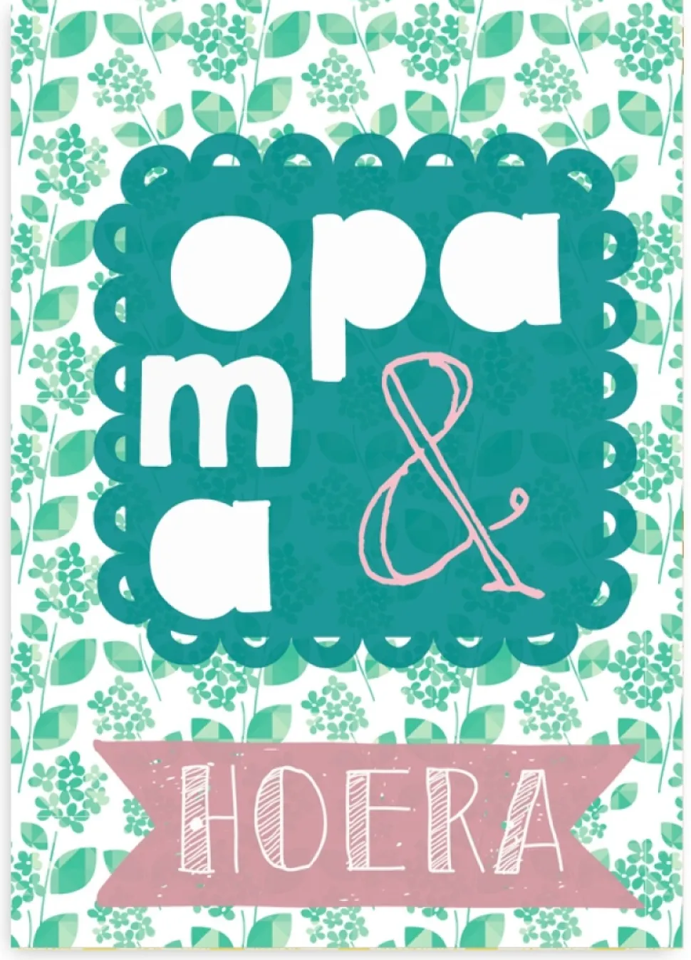 Specificaties voor: Wenskaart (Gefeliciteerd) Opa en Oma Hoera
