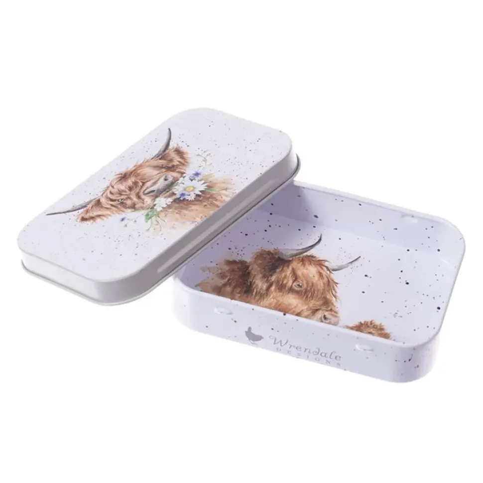 Dit mini blikje van Wrendale is perfecft voor het bewaren van snuisterijen, de eerste tandjes of iets kleins, dit mini-blikje heeft een prachtig koe ontwerp. Ook de binnenzijde is voorzien van een illustratie. Afmeting: 9.5x6x2 cm.