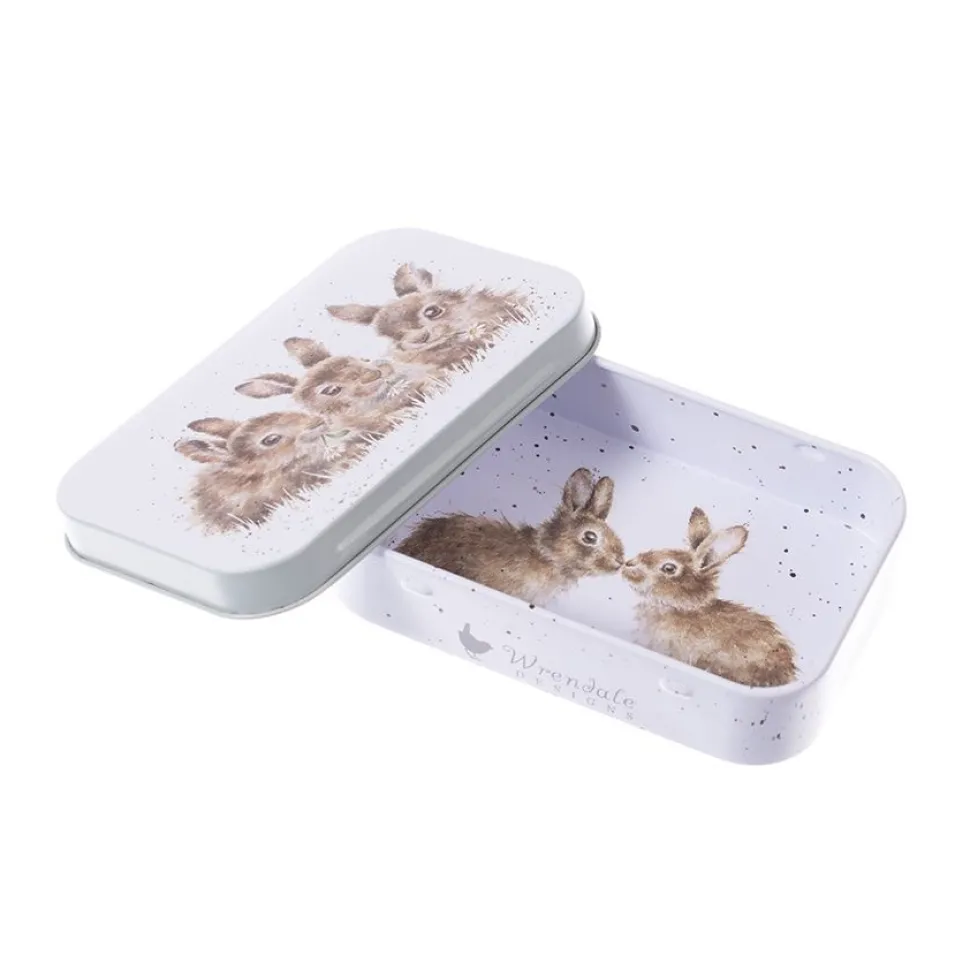 Dit mini blikje van Wrendale is perfecft voor het bewaren van snuisterijen, de eerste tandjes of iets kleins, dit mini-blikje heeft een prachtig konijn ontwerp. Ook de binnenzijde is voorzien van een illustratie. Afmeting: 9.5x6x2 cm.