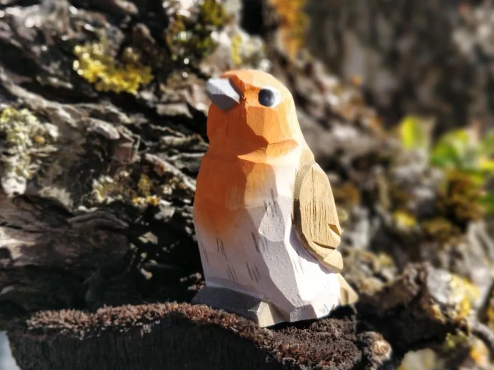 Dit Roodborstje van wudimals is 5,1×2,4×4,4cm groot