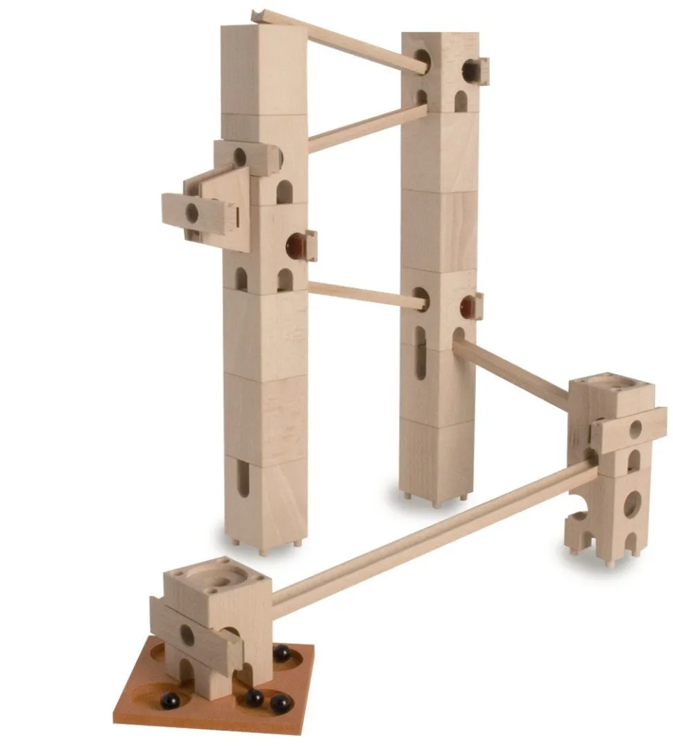 Het meest bijzondere cadeau wat je iemand kunt geven is deze 40 delige muzikale knikkerbaan van Xyloba. Er zijn oneindig veel mogelijkheden en uitbreidingsmogelijkheden. Dit is de basisset Mezzo, gemaakt in Zwitserland van inlands geteeld beukenhout.